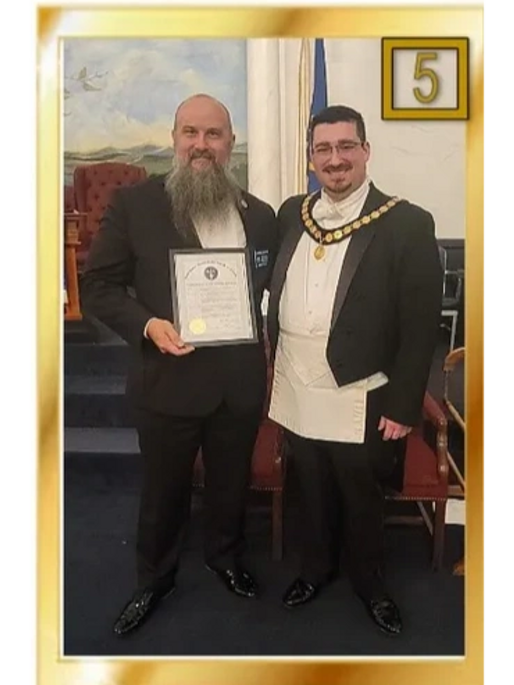 BrotherJoel Van Vollenhoven was not present and will receive his certificates at a future meeting.