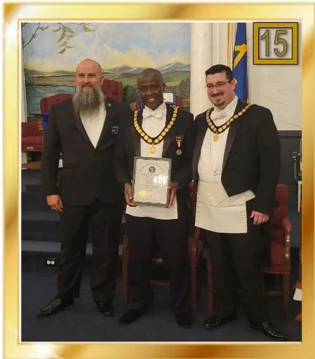 Right Worshipful Brother Jean-Paul Dongmo received his award for 15 years of service to the Craft.