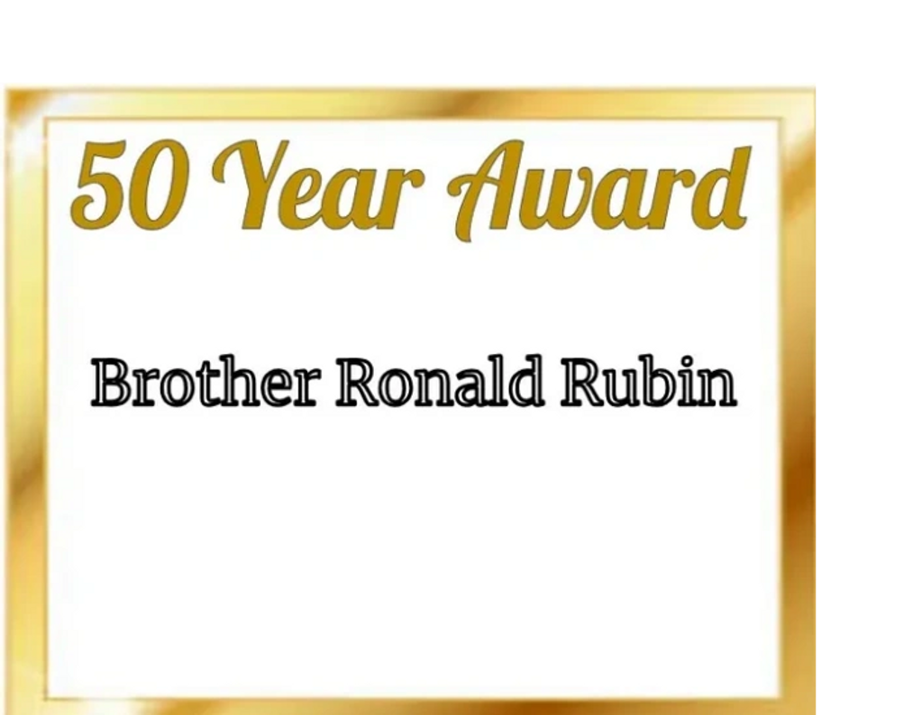 Brother Ronald Rubin was uable to attend and will receive his 50 Year Service Certificates.